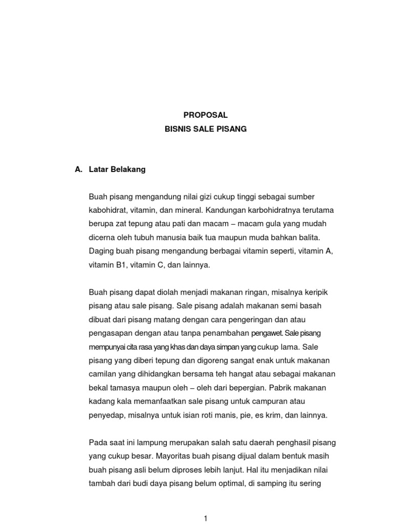 Alasan mengenai pemilihan sebuah usaha a. Penjelasan mengenai usaha pisang sale. Kewirausahaan | contoh proposal usaha. Adapun maksud dan tujuan dari penyusunan proposal ini adalah untuk memenuhi salah satu tugas yang diberikan oleh dosen pada mata kuliah kewirausahaan. Contoh proposal keripik singkong (kwu)posted byjelajah internet,add commentincontoh proposalonthursday, november 06, 2014.